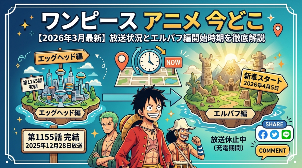 ワンピースアニメは今どこ?2026年3月現在の放送状況とエルバフ編開始時期を解説