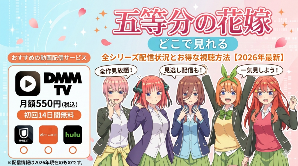 「五等分の花嫁」はどこで見れる?全シリーズの配信状況とお得な視聴方法【2026年最新】