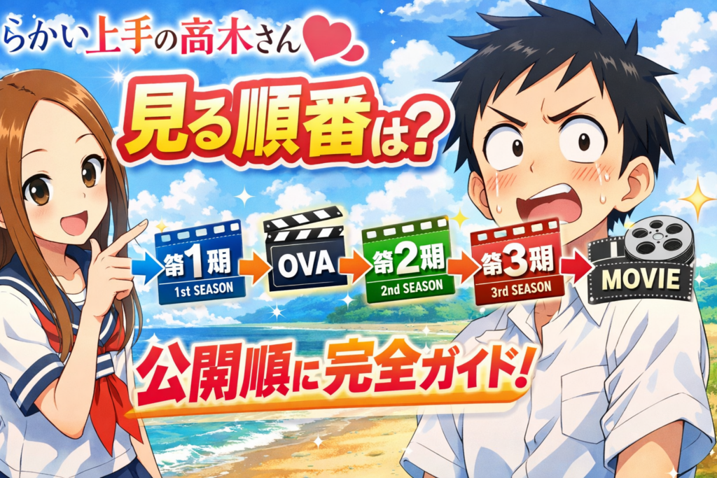 「からかい上手の高木さん」を見る順番はこれで完璧!全シリーズの時系列・見どころ・配信情報まとめ【2026年最新】 「からかい上手の高木さん」を見る順番は、第1期→OVA→第2期→第3期→劇場版の公開順でOKです。公開順と時系列順が一致しているため、迷うこ... -